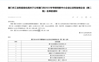熱烈祝賀《唯創盈》喜賀廈門市2023年專精特新中小企業認定和復核企業(公告序號167) -